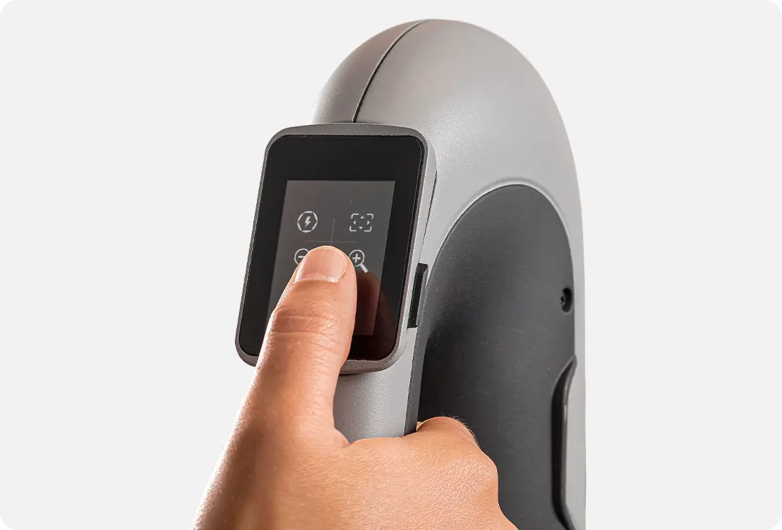 מסך מגע רב-תכליתי ואינטואיטיבי זה מעניק לך דרך חדשה לגמרי לתקשר עם סורק התלת-ממדי Peel שלך. ניתן להשתמש בו גם כמד מרחק לסריקה קלה מבלי להסתכל על המחשב.