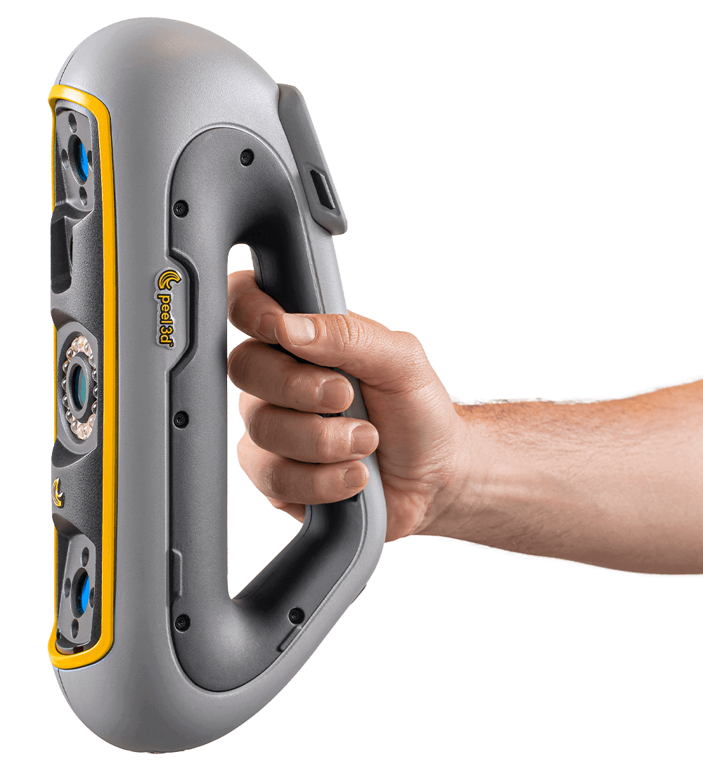 ידית האחיזה המשולשת הייחודית של Peel 3 עוצבה להיות נוחה ברוב תנוחות הסריקה התלת-ממדיות הנפוצות.